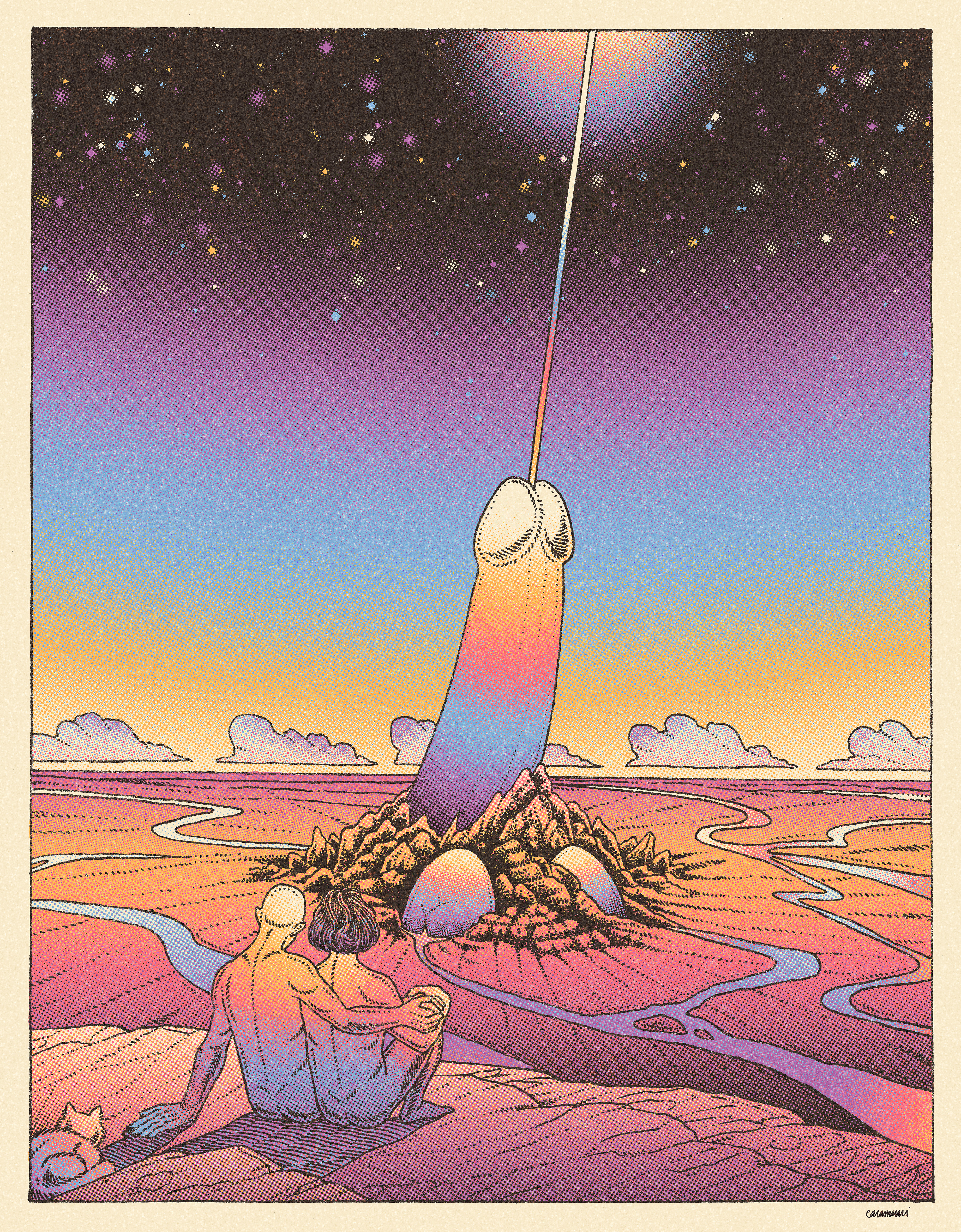 O encontro filosofal psico-físico entre Rabindranath e o vagabundo iluminado é retratado nesta ilustração onde é apresentada a tour da banda TAGORE pelo interior de São Paulo-Brasil.