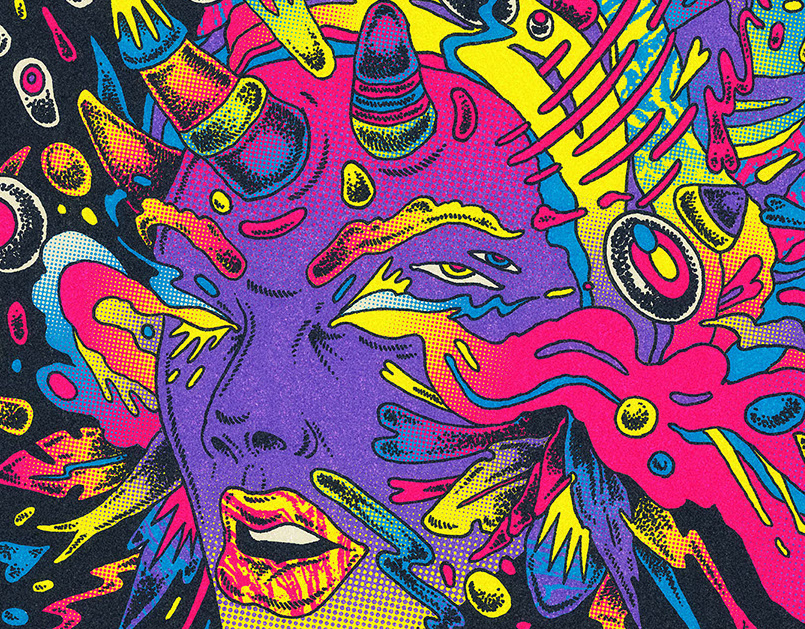 Poster institucional de promoção da fábrica de pedais "Hand Made" de guitarras, a Betetronics, da Califórnia, USA. Na ilustração representei 4 lendas do rock mundial, transmutadas em abelhas mutantes: Jimi Hendrix, John Lennon, Kurt Cobain & BB king, respectivamente de cima para baixo.
