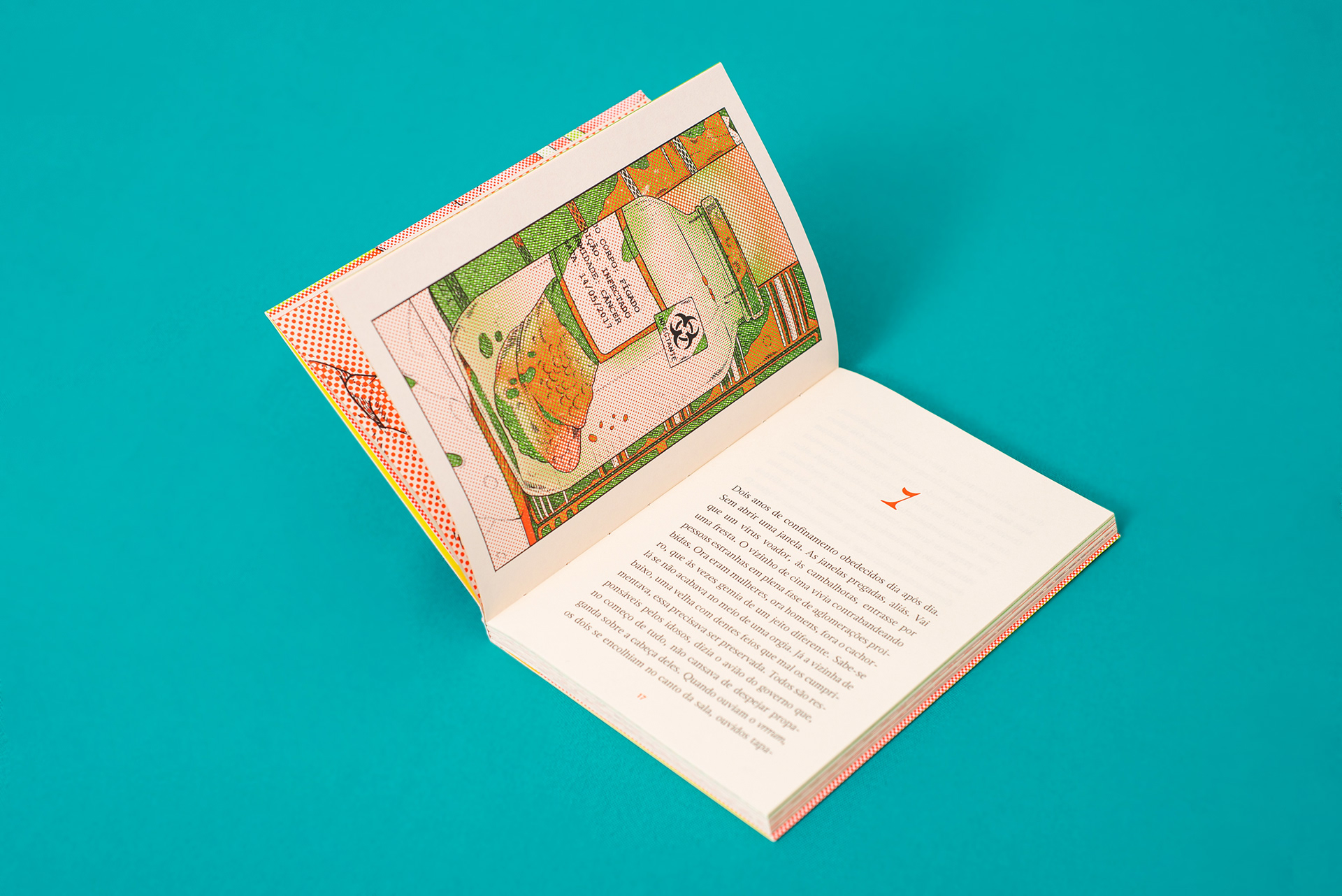 O projeto gráfico do livro foi pensado para causar curiosidade e até mesmo estranhamento. As fontes escolhidas trazem legibilidade à mancha de texto, enquanto alguns detalhes tornam-se mais estéticos, com o uso de uma família tipográfica bastante curvilínea. Optou-se também por destacar o nome dos(as) autores(as) e o título dos contos, com spreads em negativo. O ilustrador Caramuru Baumgarten trabalhou com retículas e uma paleta de cores vibrantes e contrastantes, compondo as imagens que acompanham o texto. Assim como Partes de uma casa, os livros chegaram aos leitores em maio de 2021 para uma experiência de leitura encantadora.