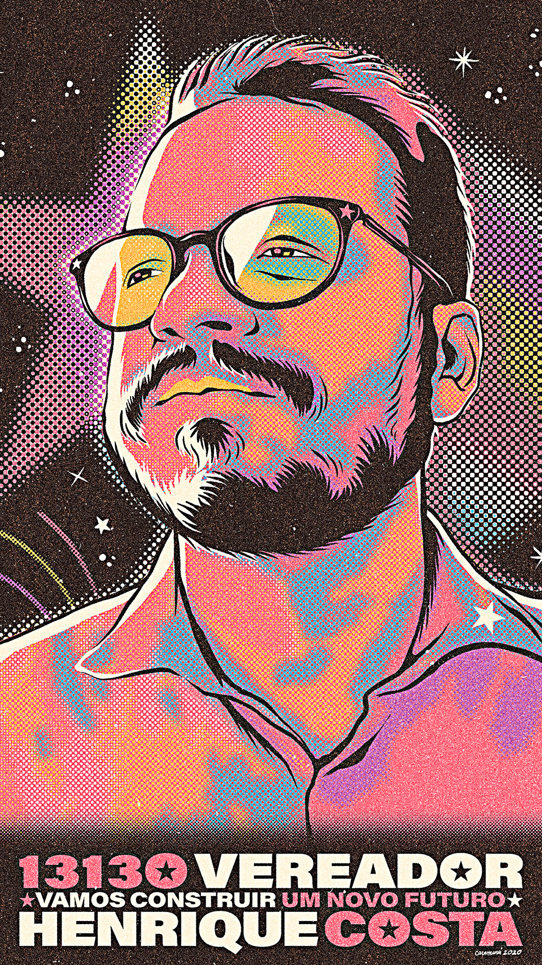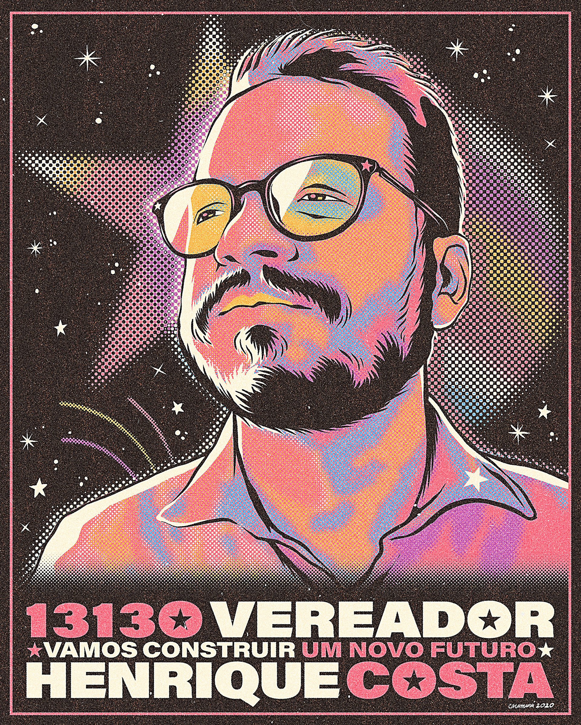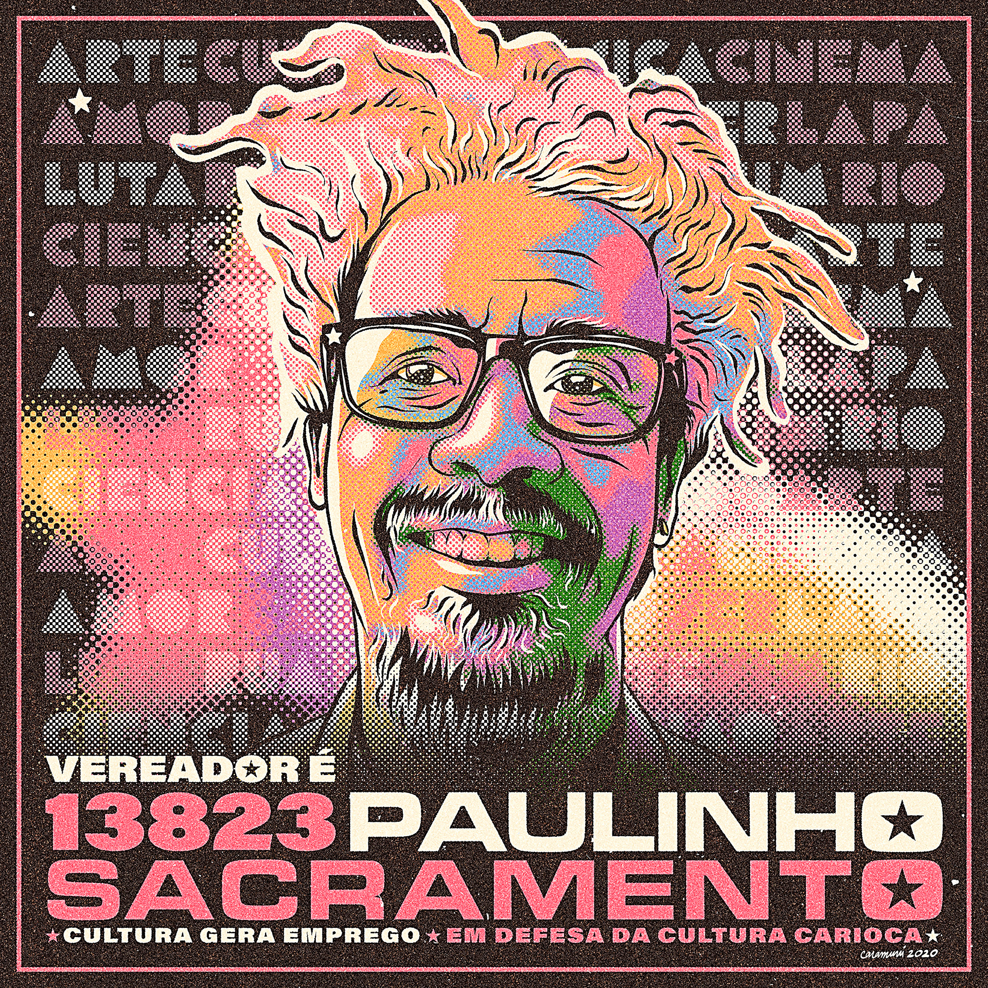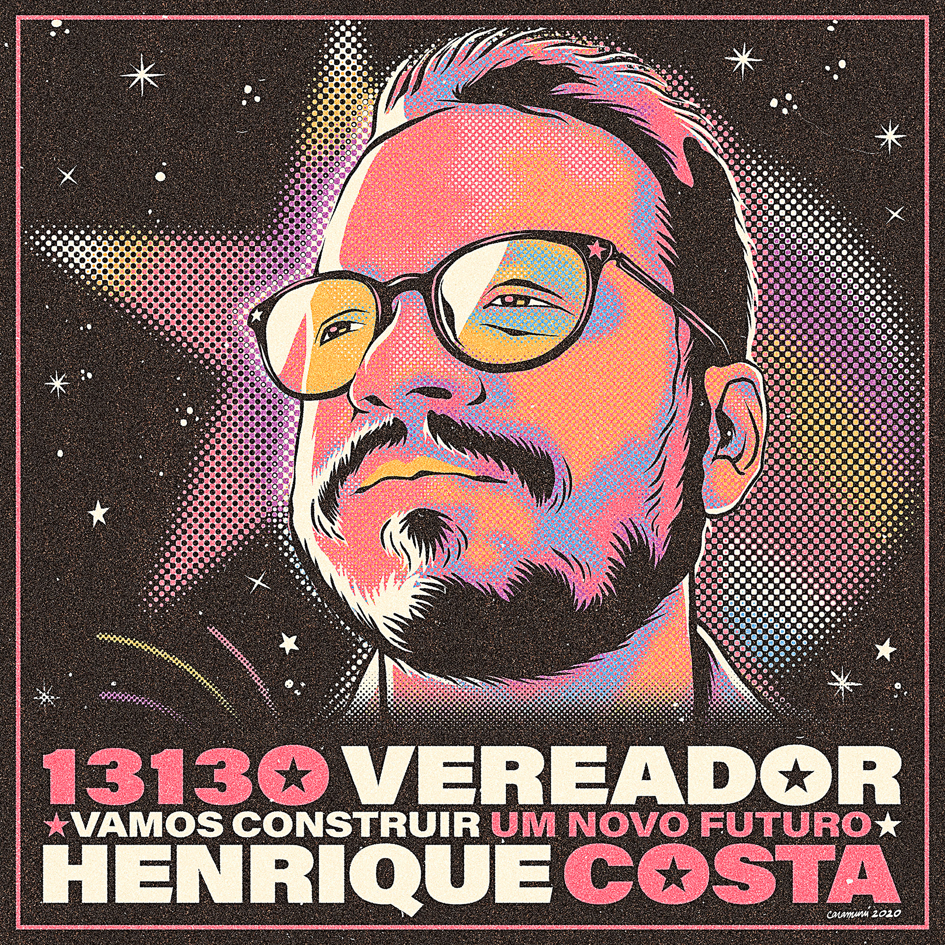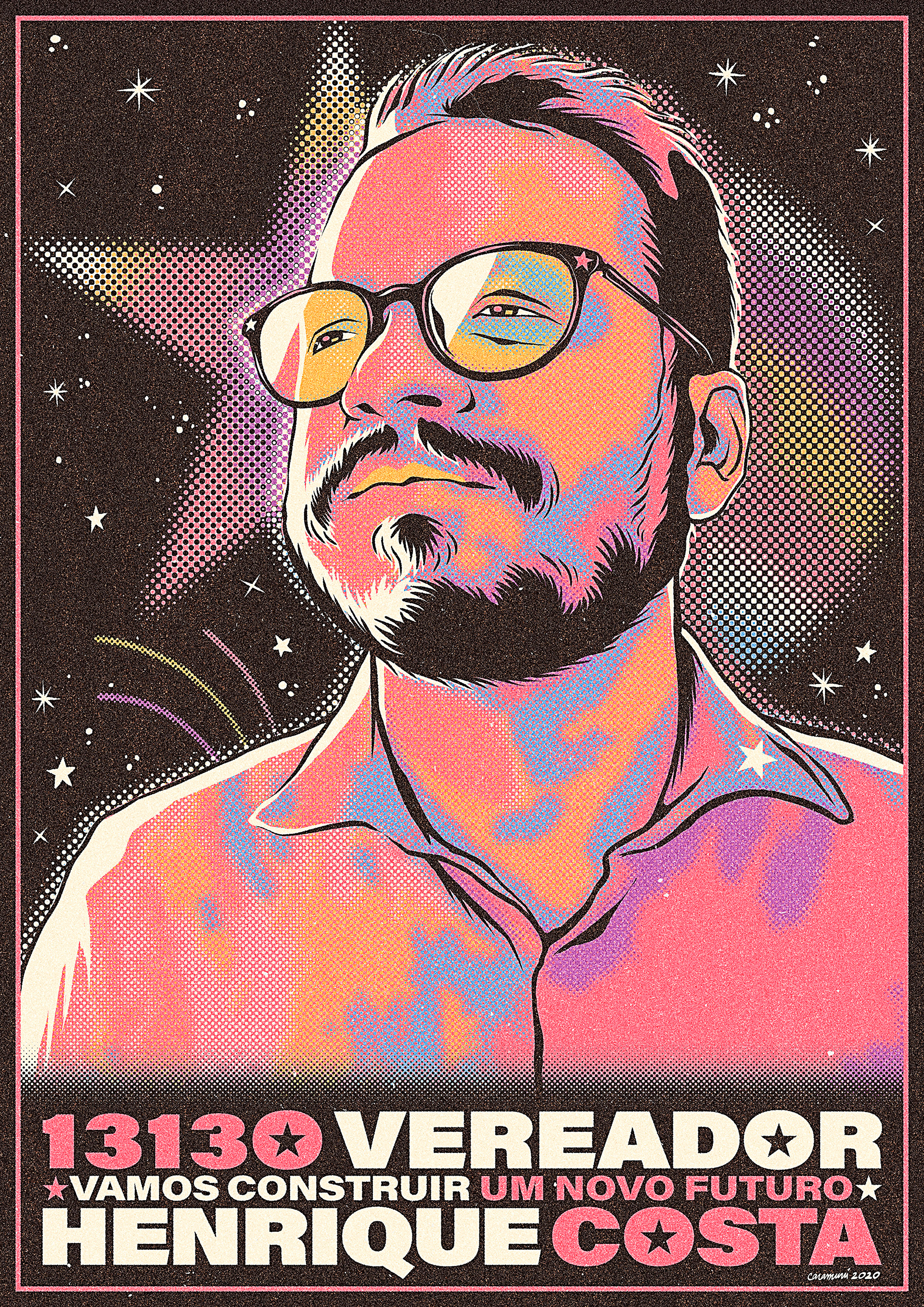 Mantendo minha integridade no posicionamento político, nas eleições de 2020 crieis dois cartazes onde declaro meu apoio a dois vereadores de esquerda, Henrique Costa e Paulinho Sacramento, ambos do partido PT. Acho muito importante que os artistas não se calem mediante a decisões democráticas importantes.