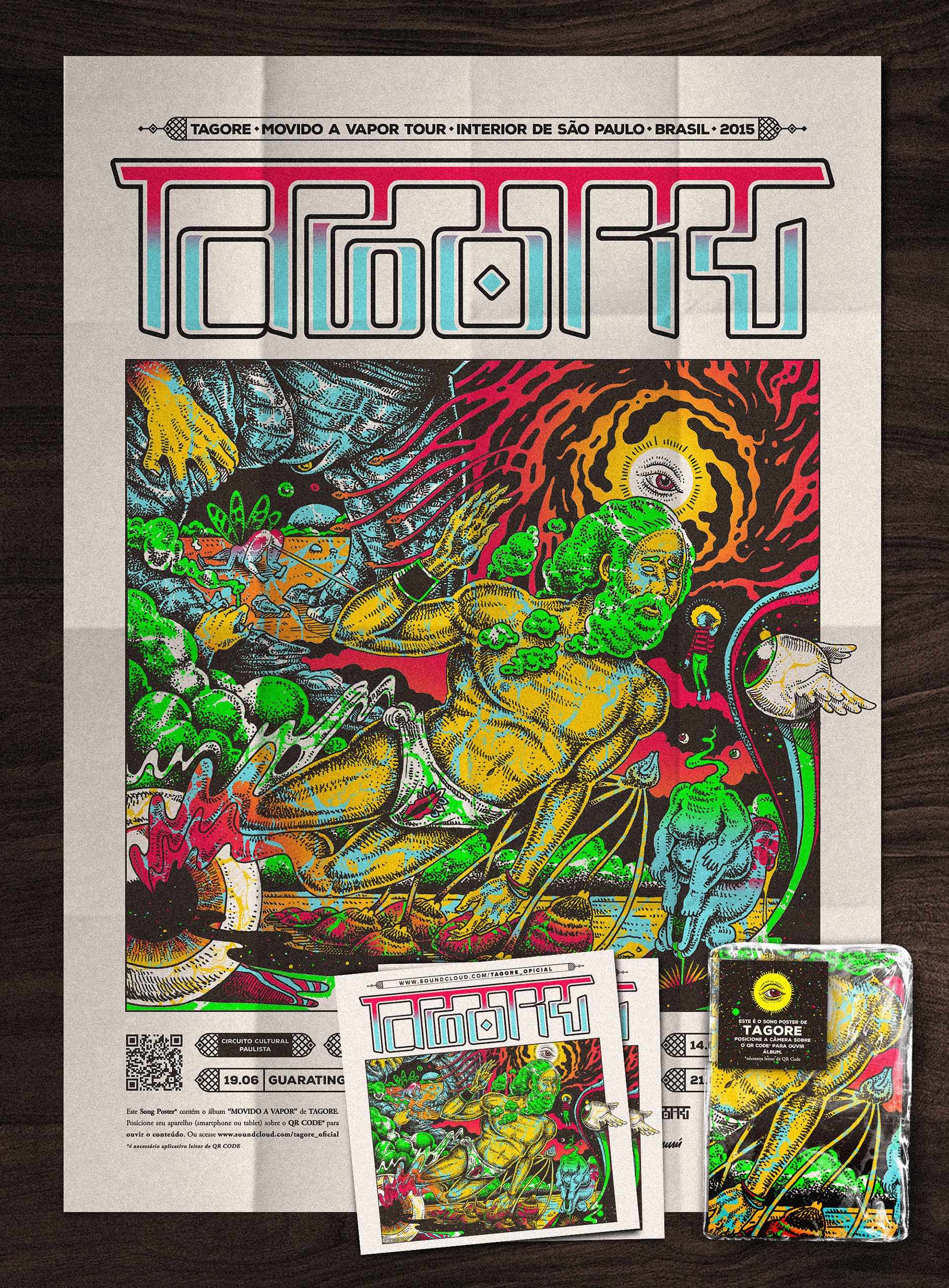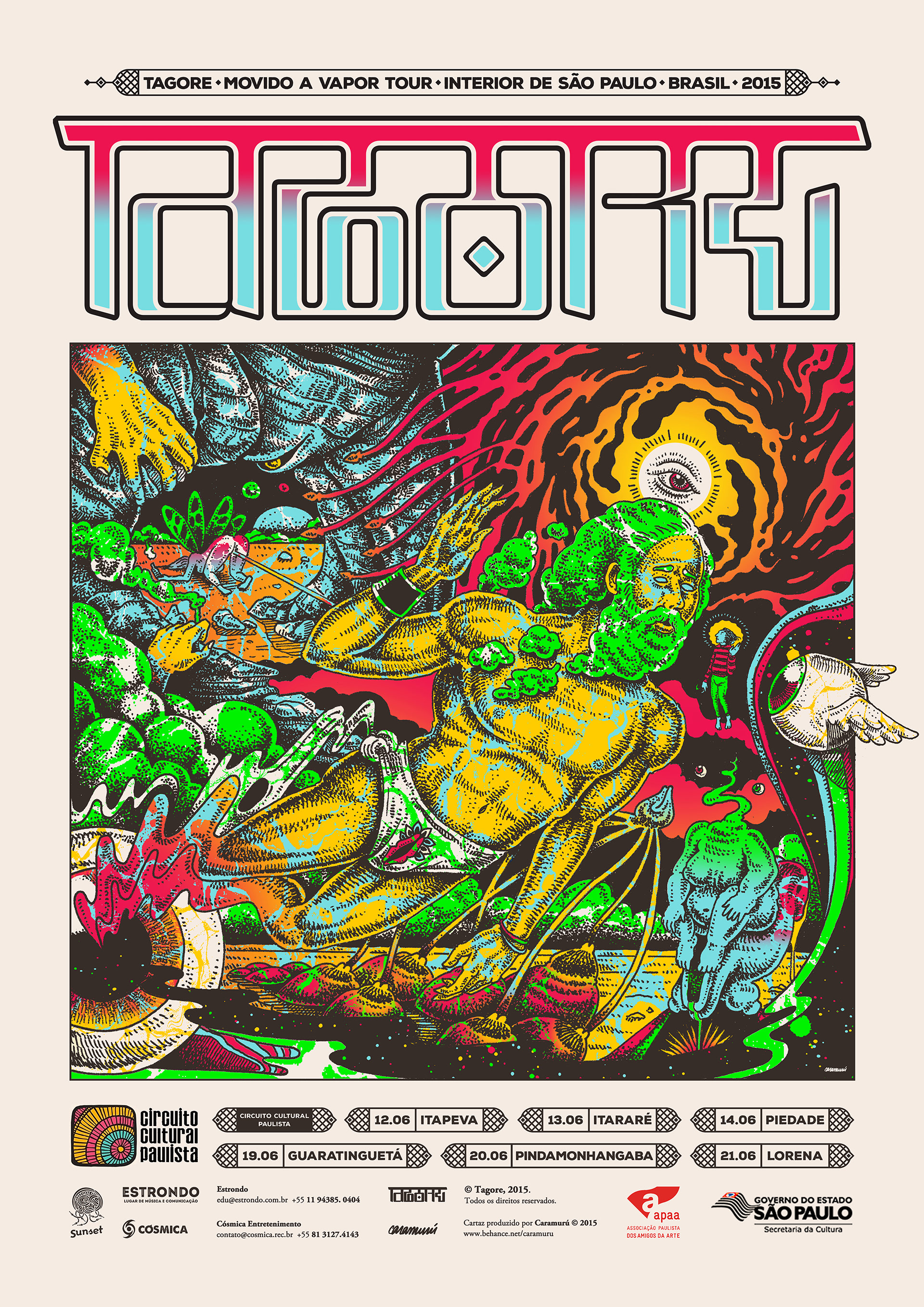The meeting psycho-physical philosopher between Rabindranath Tagore and the enlightened vagabond. This illustration shows the band TAGORE tour of the interior of São Paulo-Brazil.