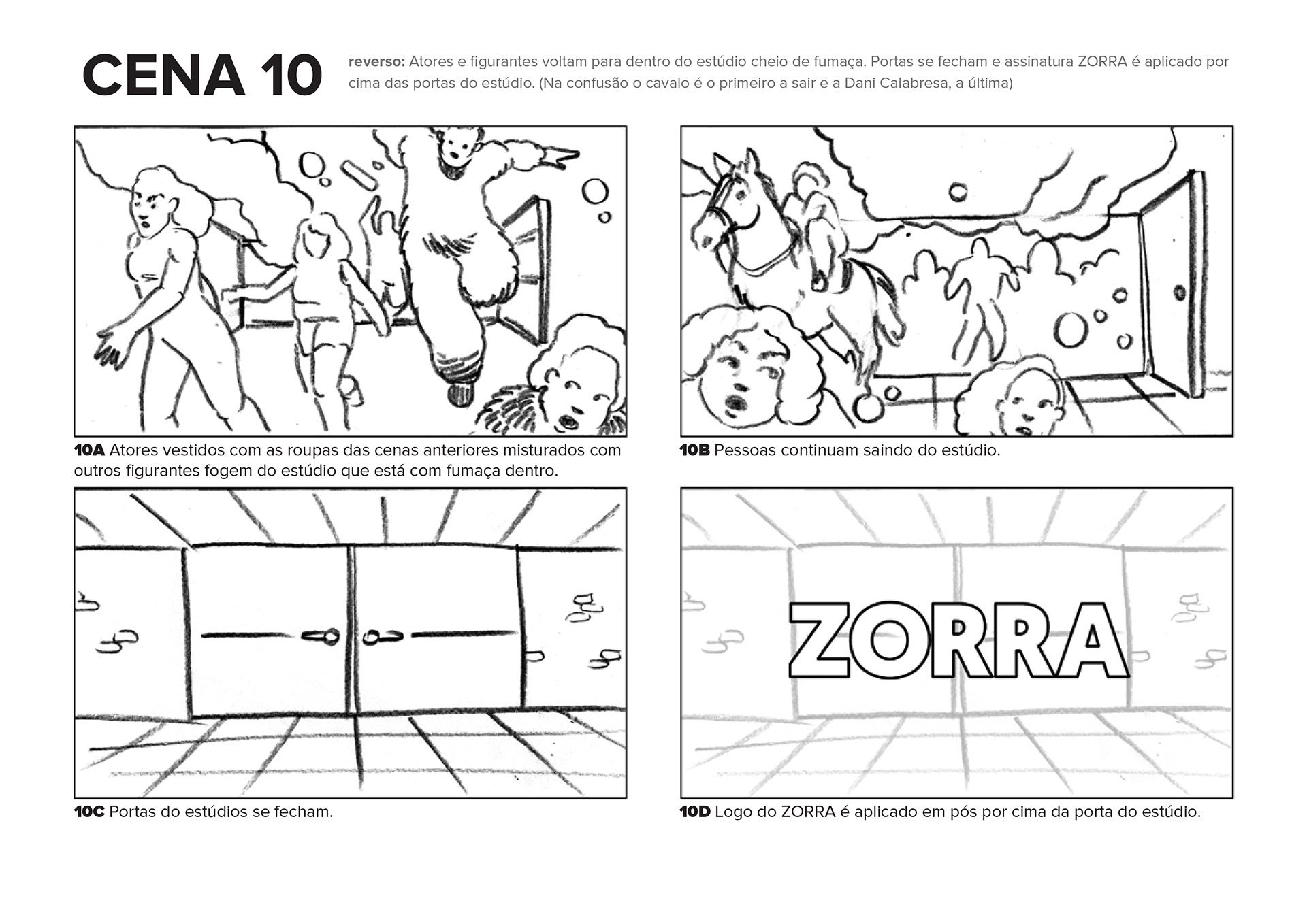 Zorra is a humorous program produced and shown by Rede Globo from May 9, 2015 until November 28, 2020. The program came with a reformulated humor, with the mission of raising the audience index on Saturday nights, replacing the extinct Zorra Total . Through script, storyboard and art direction, we created the new opening of the program. Like a backwards film, we recreate a comic, tragic, chaotic and twisted moment.